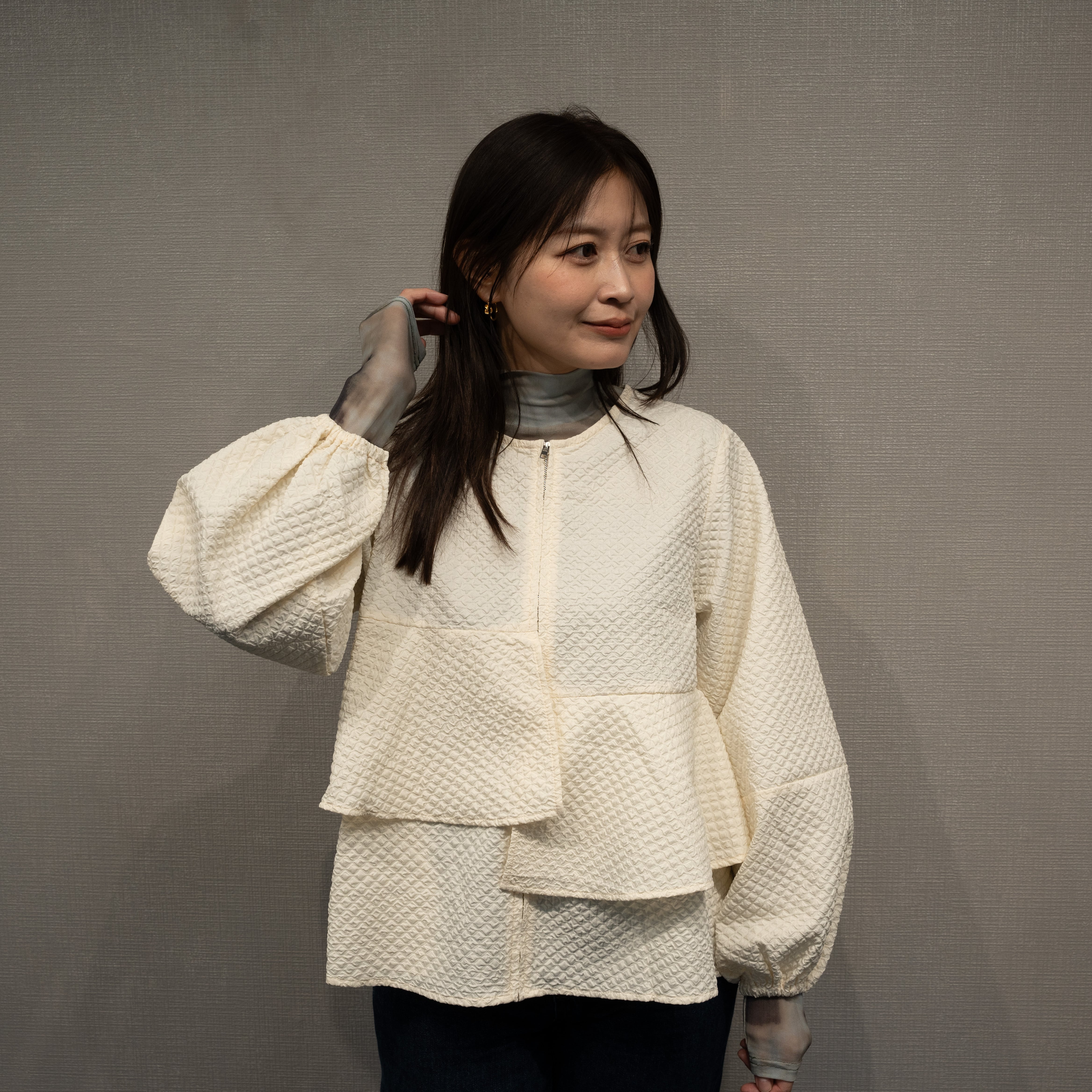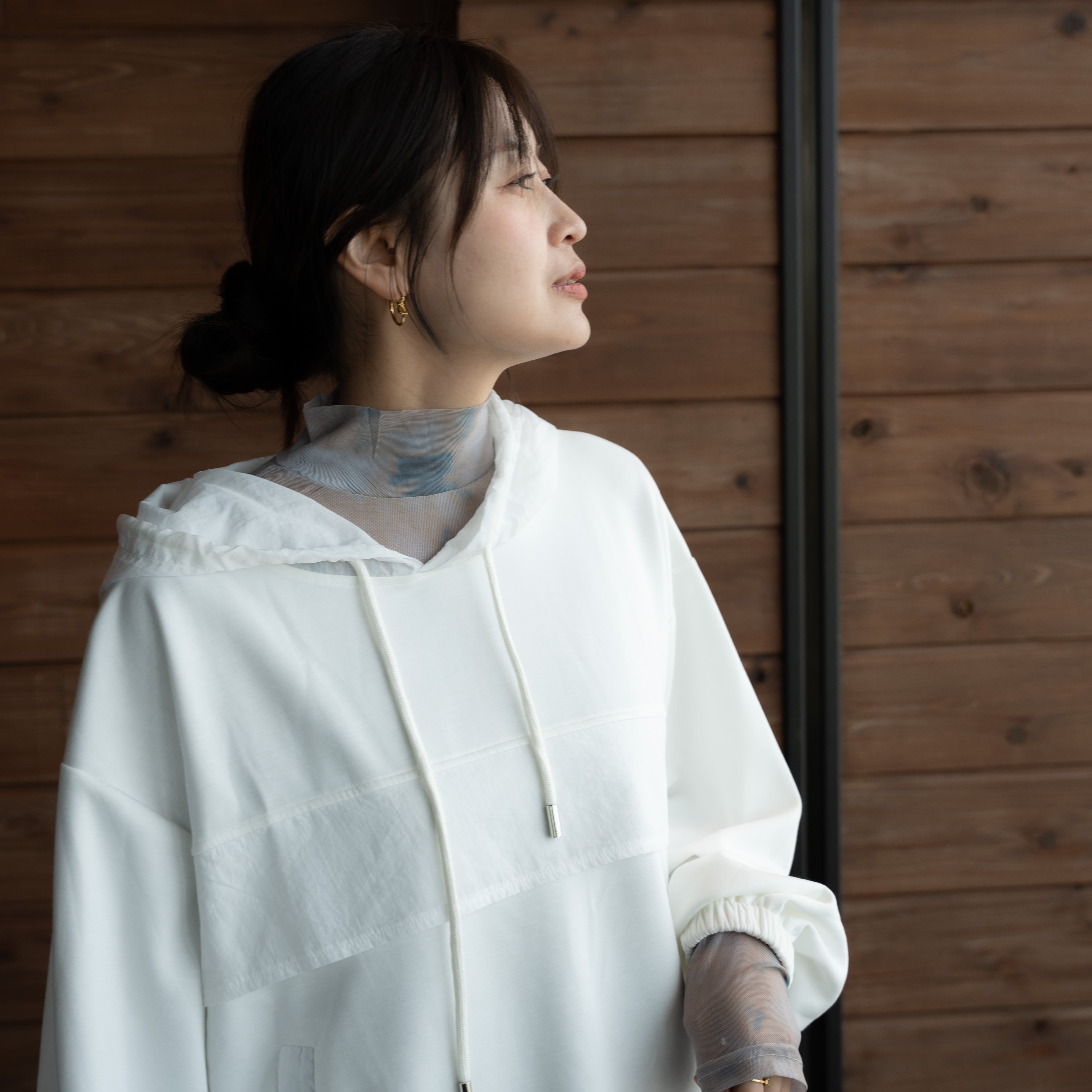 透け感を楽しむためにインナーを工夫すれば、様々なスタイリングが楽しめます。