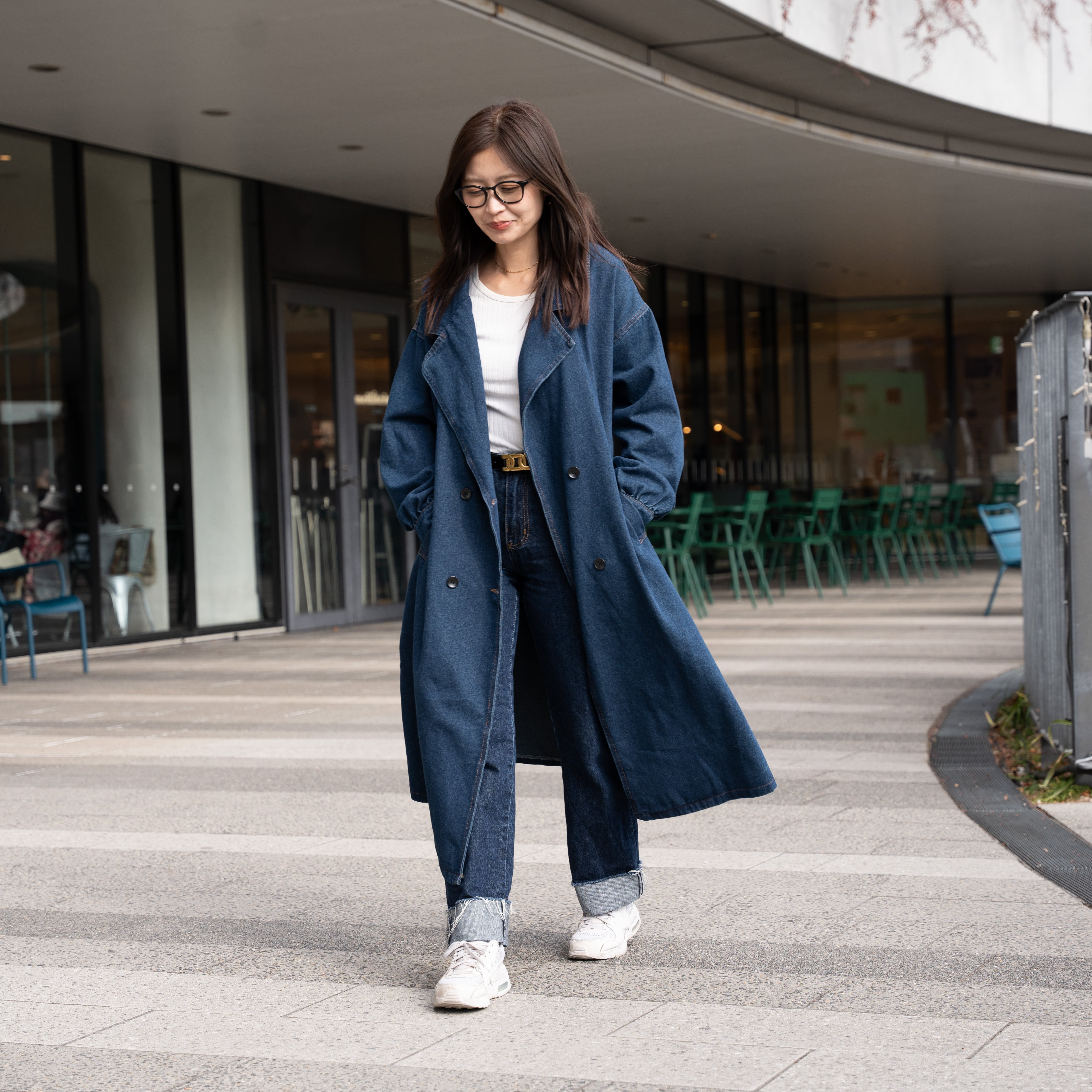 カジュアルなデニム素材で仕立てたトレンチコート!