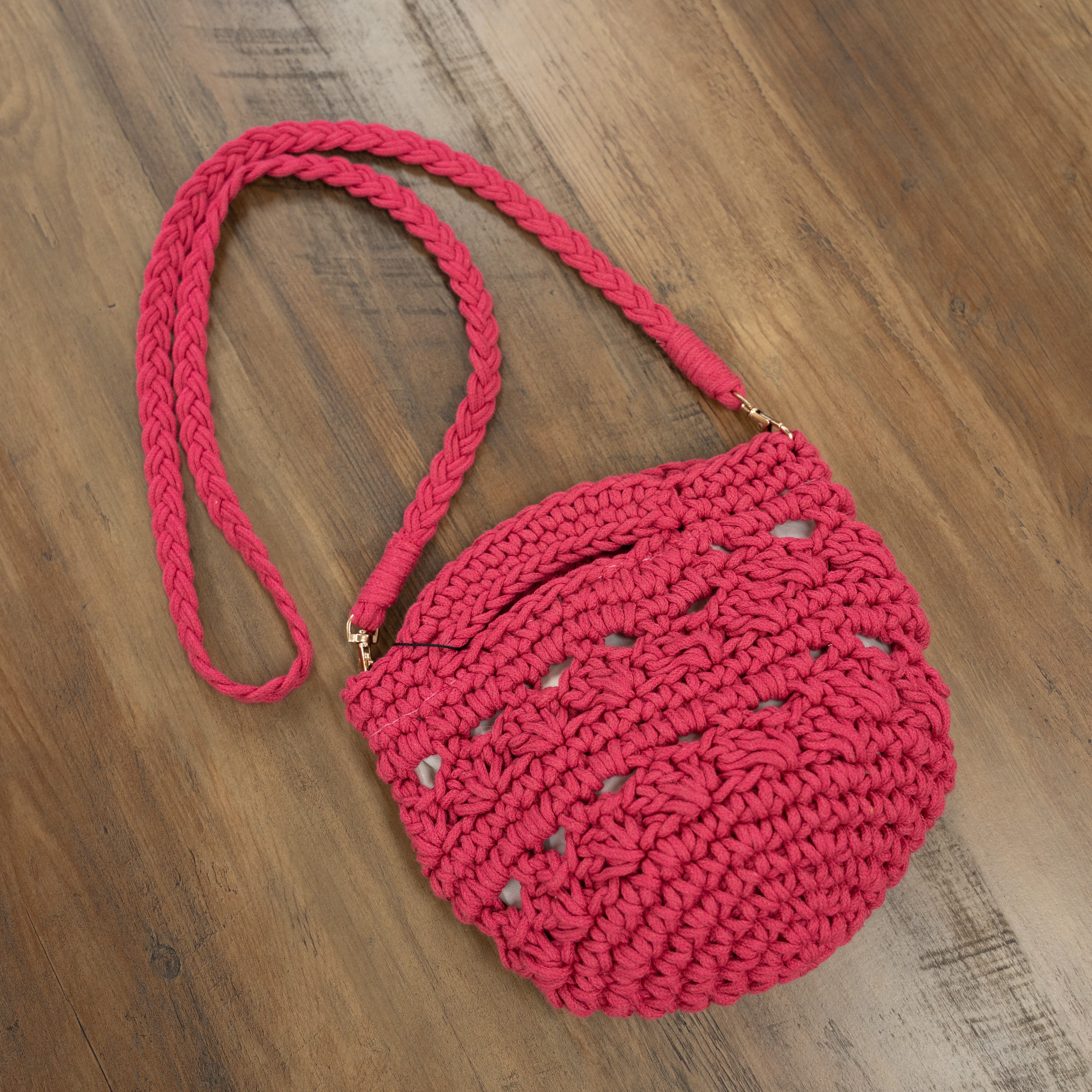 一点一点の手編みが魅力の柄編みミニショルダーバッグ!