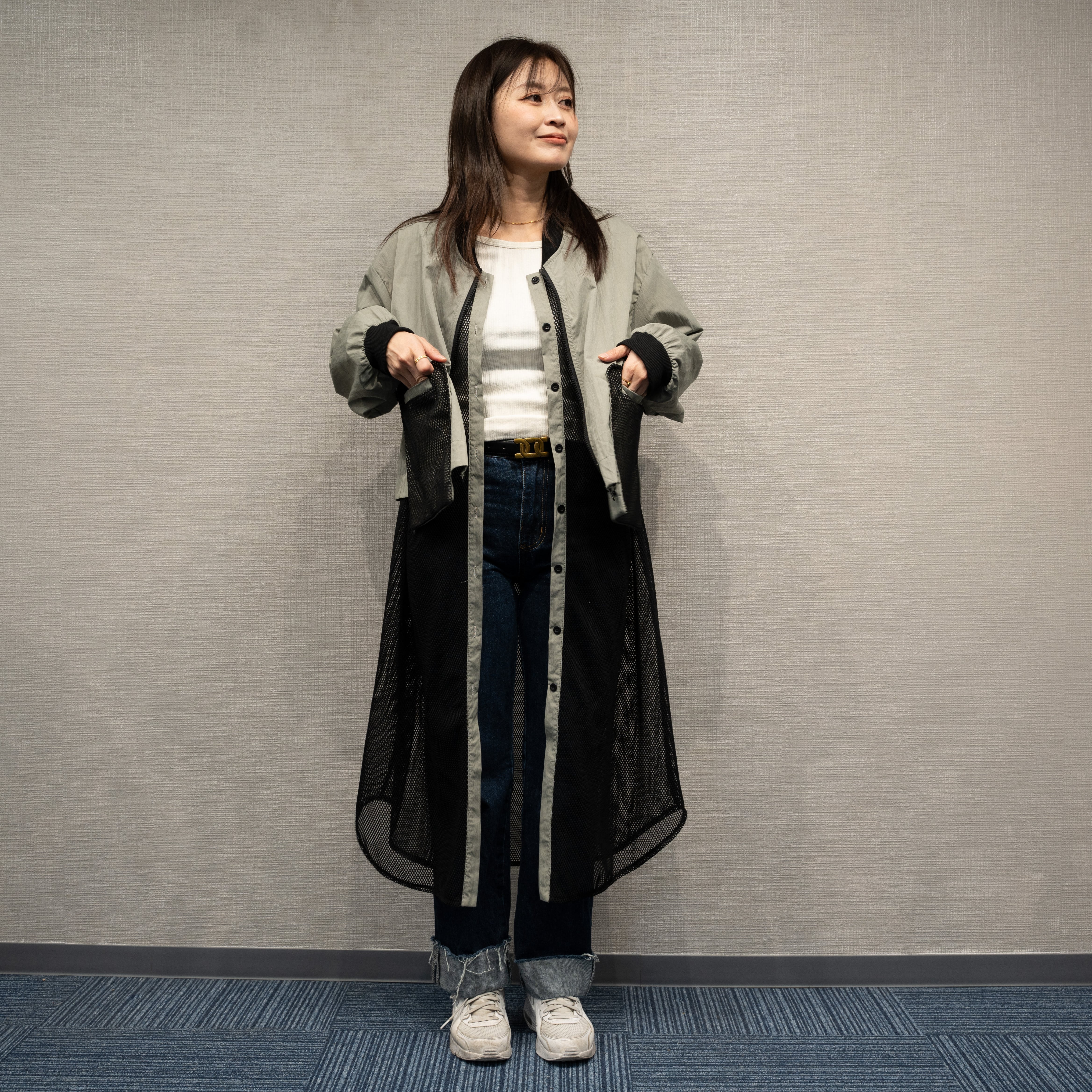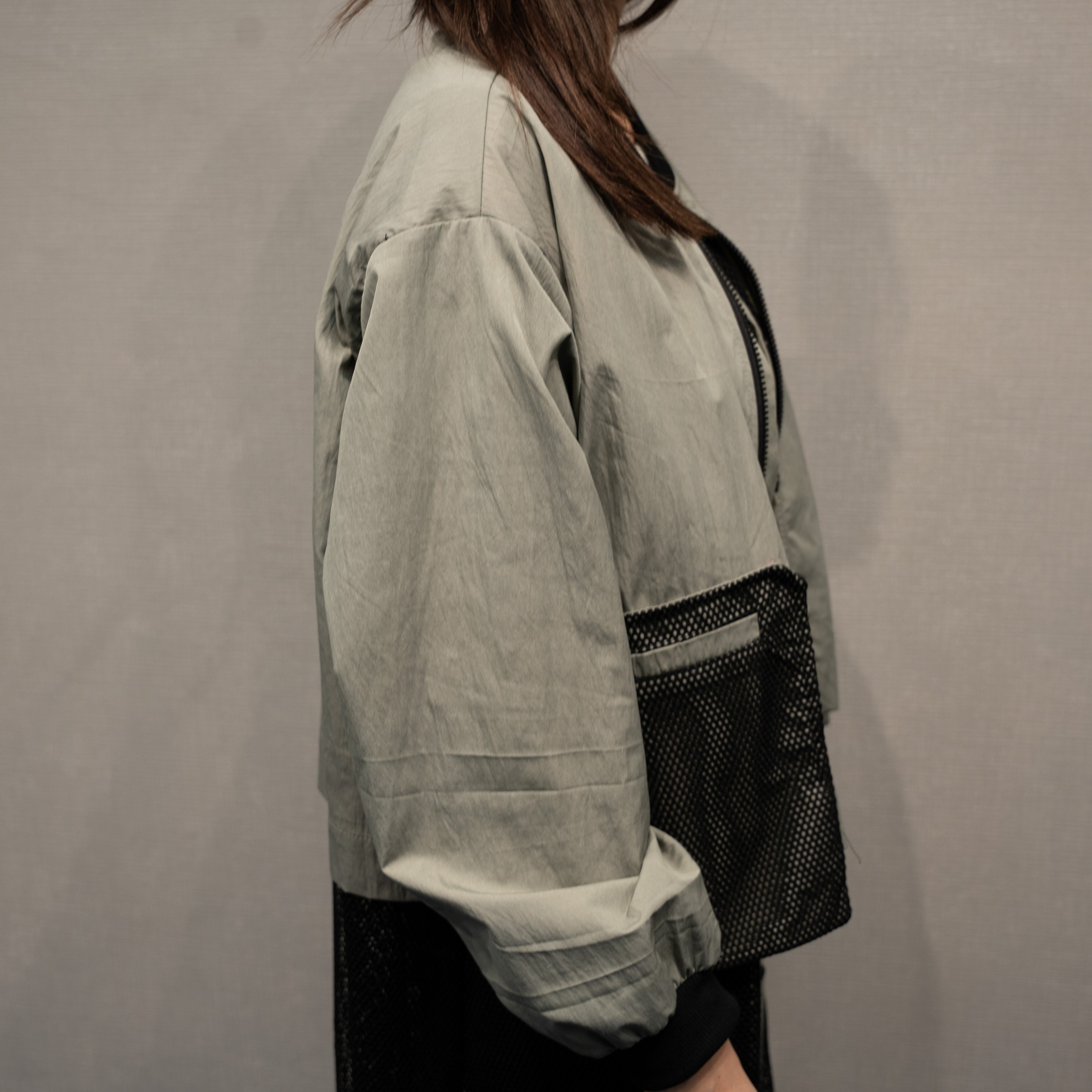 軽やかなメッシュ素材を重ねたデザインのブルゾン!